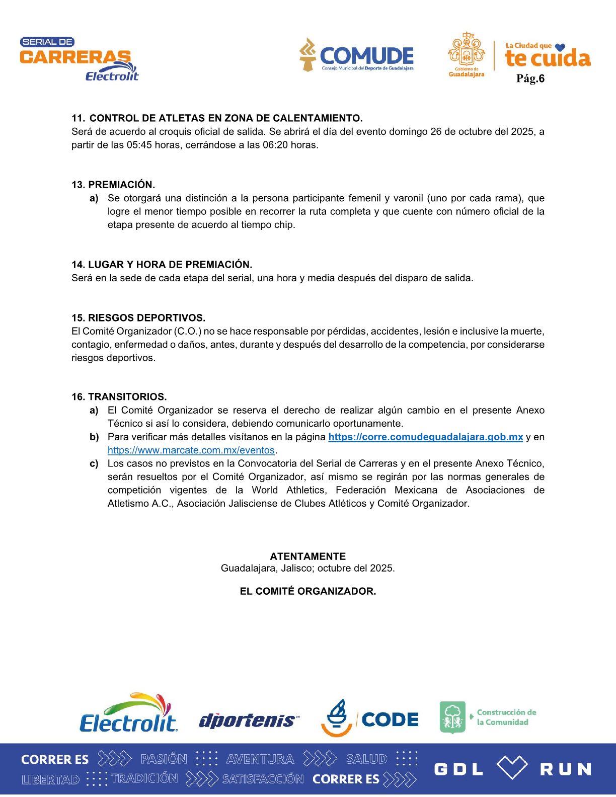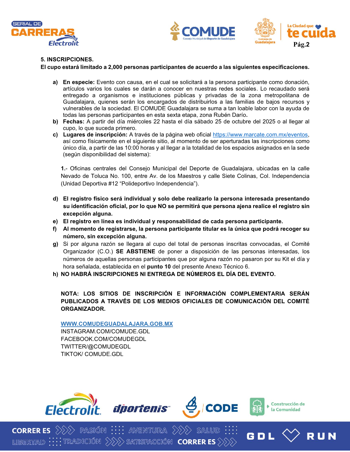 La salida y meta será en Av. Rubén Darío y calle Jesús García, a las afueras de la Unidad Deportiva #58 “Enrique Ladrón de Guevara” (col. Lomas de Providencia, 44670 Guadalajara, Jal.).